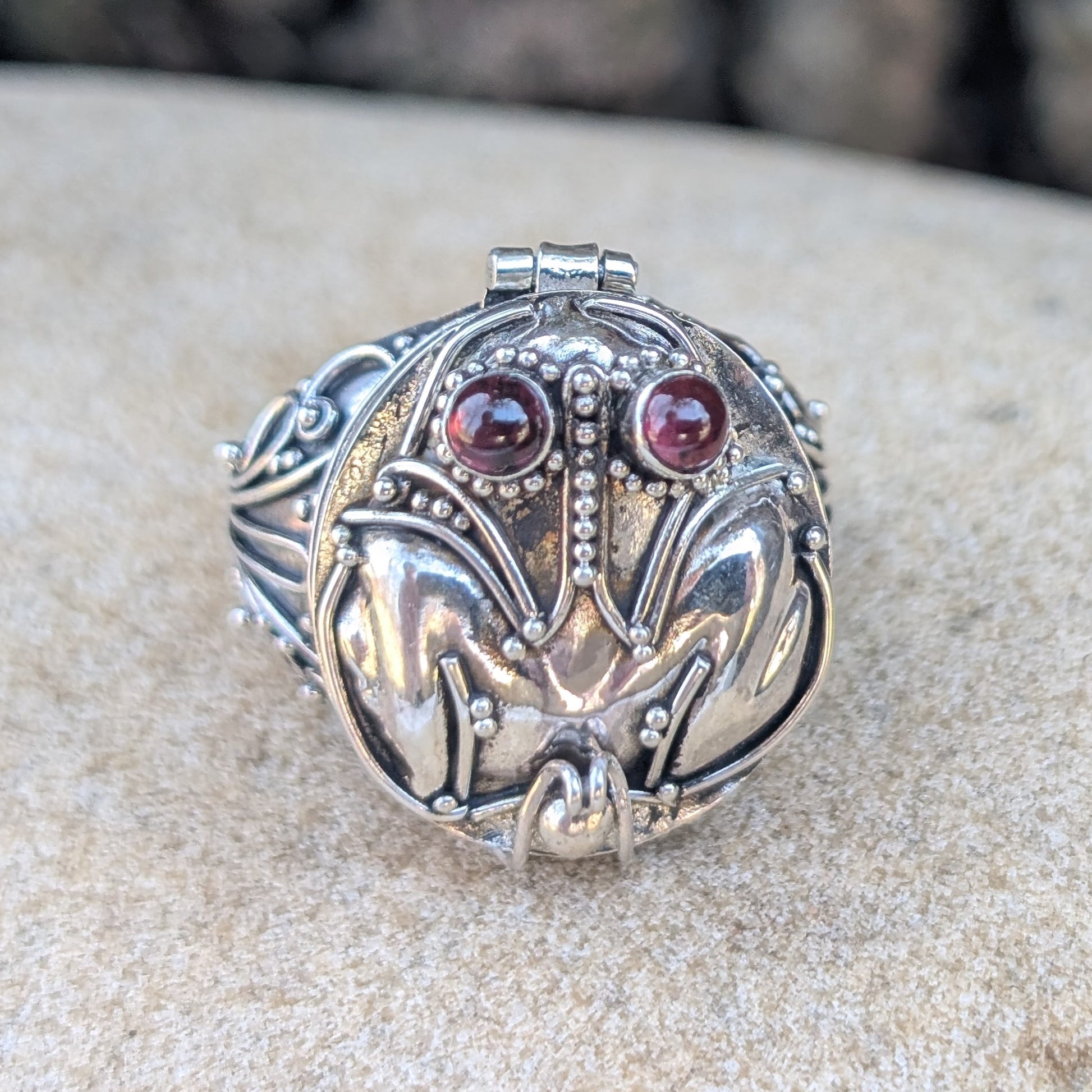 Swamp Seer - Bali Frog Poison Ring in Sterling Silver