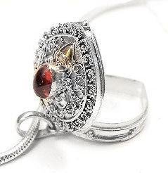 Sterling Silver Poison Pill Box Locket Amber Pendant